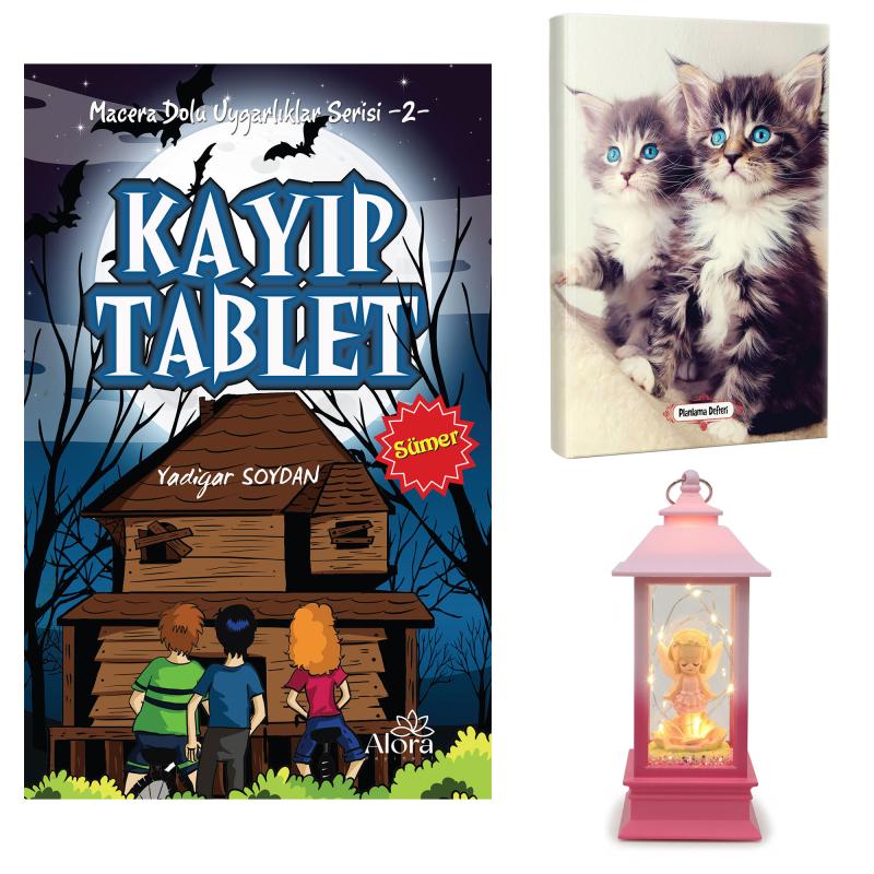 Kayıp Tablet - Maviş Kediler Planlama Defteri ve Melek Kız Temalı Fener Tipi Işıklı Kar Küresi