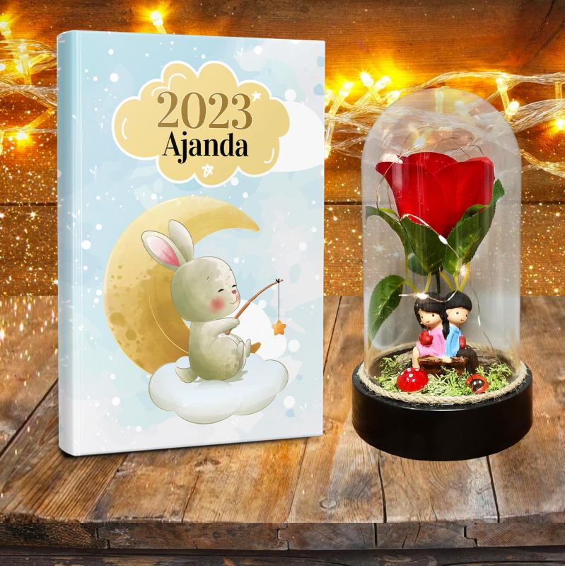 Kırmızı Gül ve Sevgililer Teraryum Hediye Seti - Ay Tavşanı Dünya Klasiği