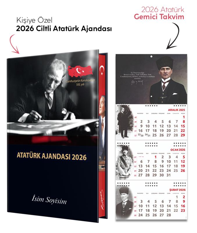 Kişiye Özel 2026 Atatürk Ciltli Ajanda ve Atatürk Gemici Takvim - Gazi