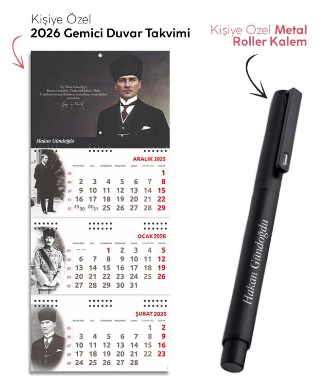 Kişiye Özel 2026 Gemici Duvar Takvimi ve Metal Roller Kalem