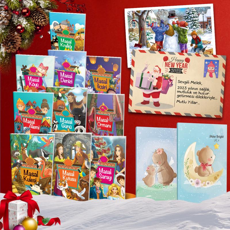 Kişiye Özel Kartpostallı - Masal Kitapları Seti - 10 Kitap 2 Defter -1