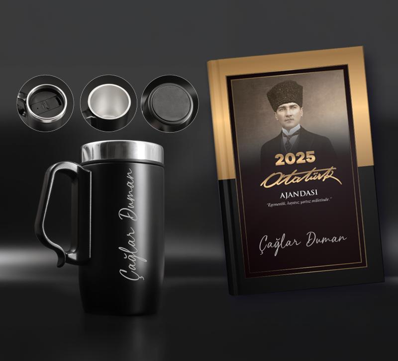 Kişiye Özel Kulplu Termos ve 2025 Atatürk Ajanda - Kalpaklı