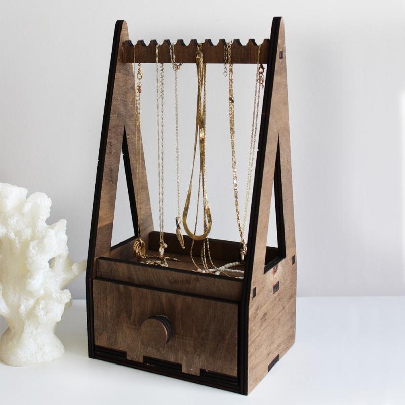 Lili Çekmeceli Ahşap Takı Standı Mini HK0192