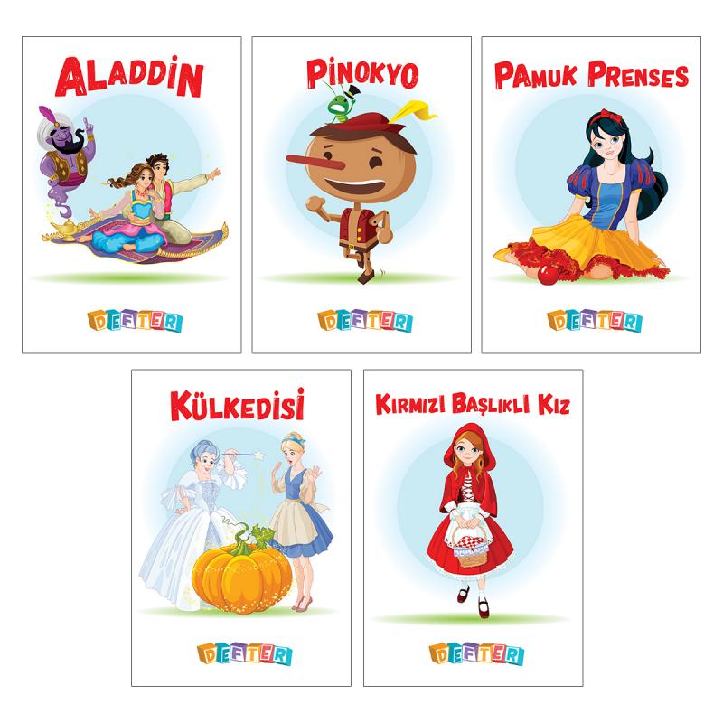 Masal Karakterleri 5'li 64 Sayfa 13,5 x19,5cm Okul Defteri