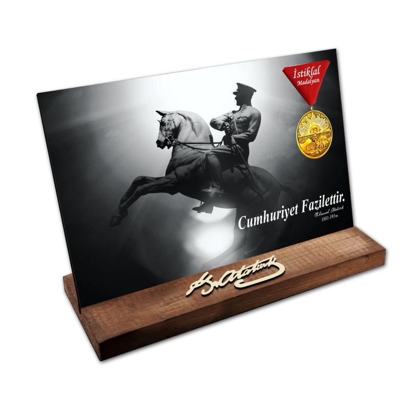 Masaüstü Ahşap Tablo - Atatürk İmzalı ve Resimli Model 4HK2510-04