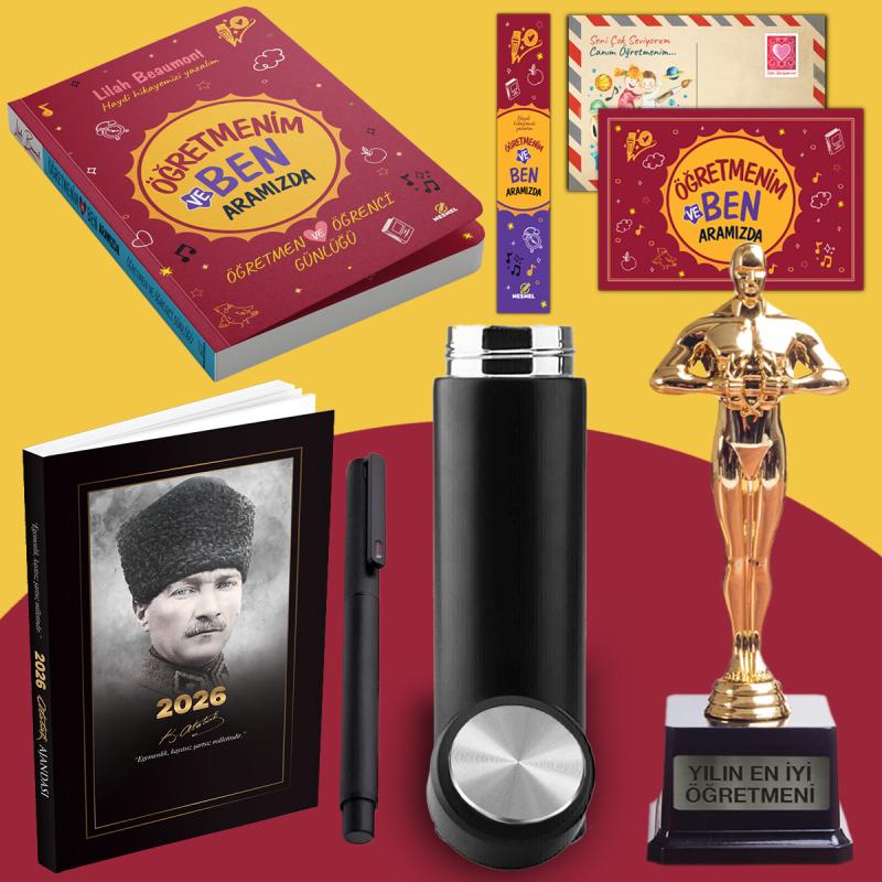 - Öğretmenim ve Ben Aramızda - Oscar Heykeli - Termos - Komutan 2026 Atatürk Ajandası ve Roller Kalem