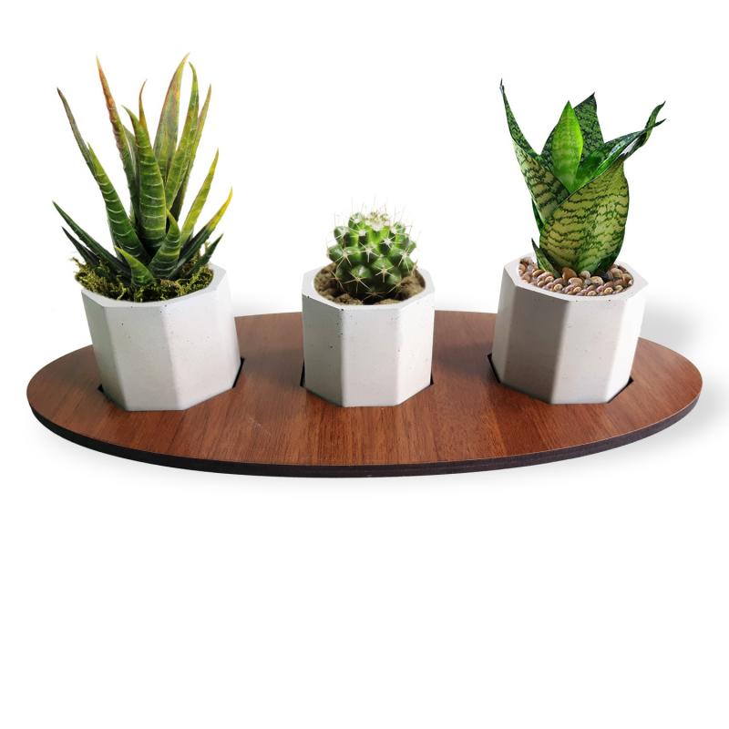 Oval Ahşap Ayaklı 6gen Beton Saksı Seti HK1661