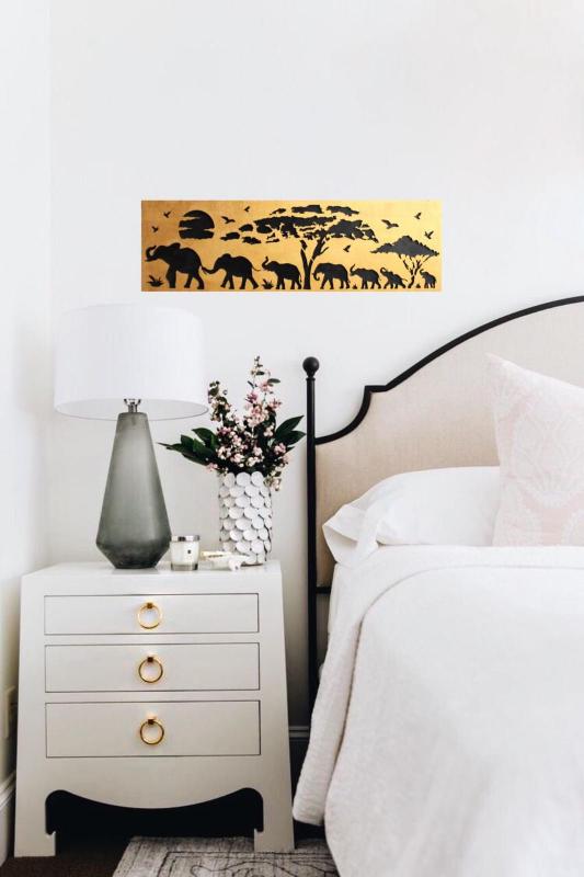 Pirela Altın Varak Ahşap 7'li Oyma Fil Tablosu HK0955-AV