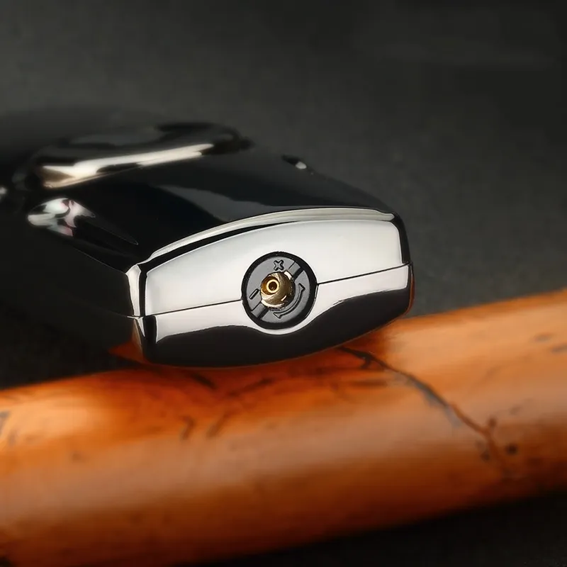 Premium Stres Çarklı Çakmak - İkili Jet Alevi - Rüzgara Dayanıklı - Black Silver