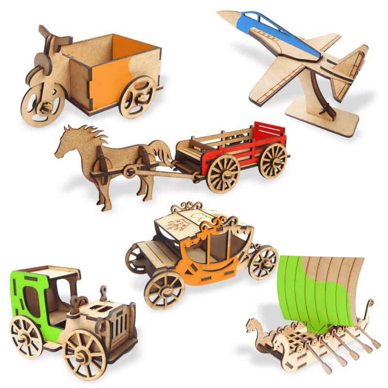 6 Adet birbirinden güzel ahşap maketleri istediğiniz gibi boyayabilirsiniz.1- Kasalı Bisiklet