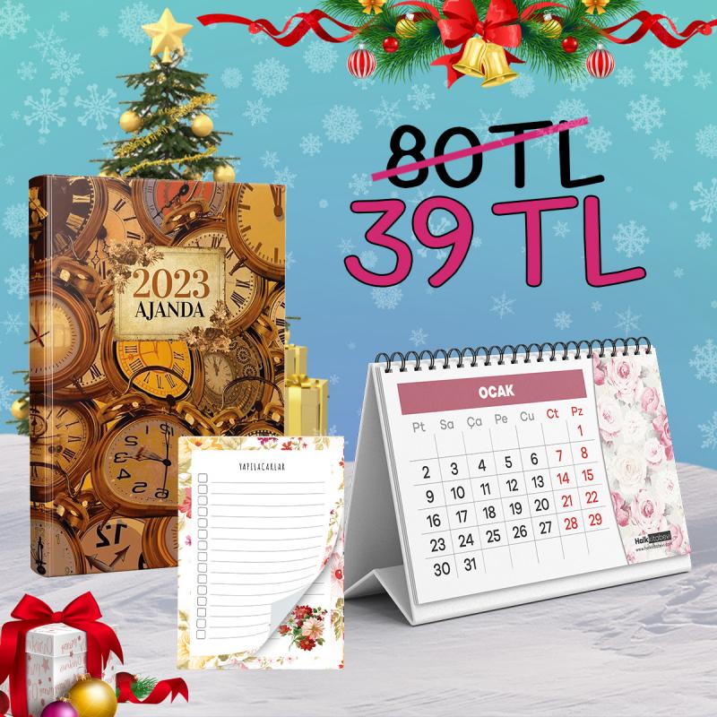 Saatler Ajanda Seti - 1 Ajanda 1 Takvim 1 Bloknot