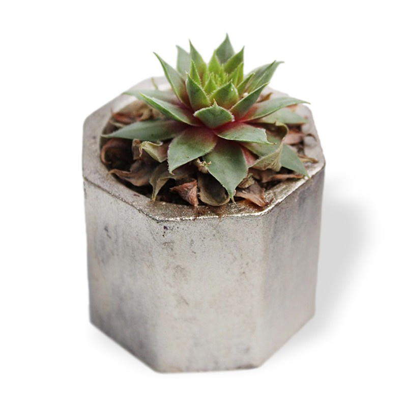 Sekizgen Silindir Beton Saksı, Gümüş - Küçük Boy