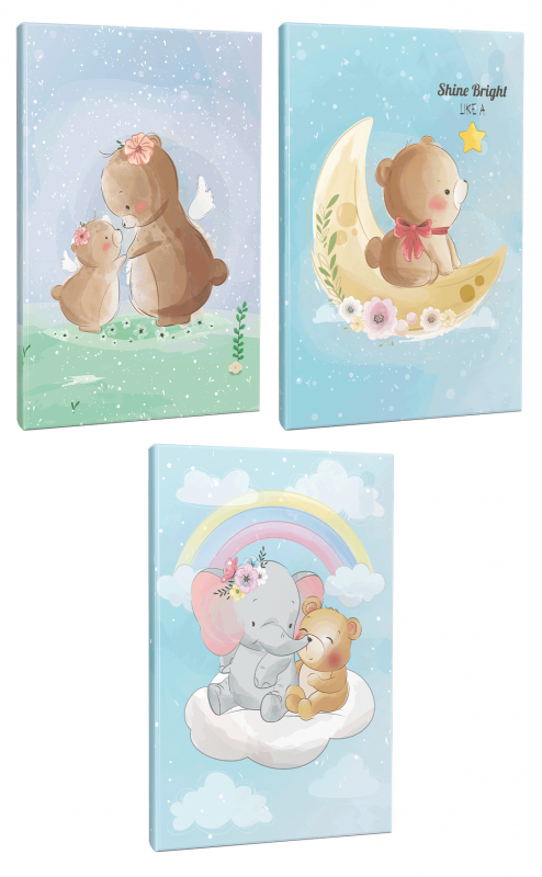 Sevimli Ayıcıklar 3lü 64 Sayfa Çizgili Okul Defteri Seti -4