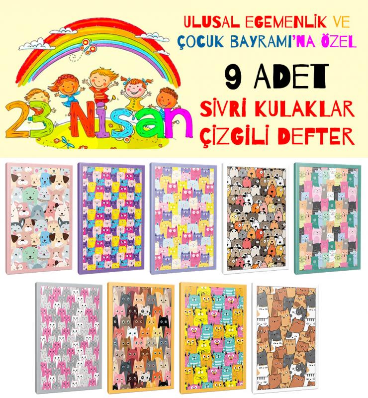 Sivri Kulaklar 9lu 64 Sayfa Çizgili Okul Defteri Seti