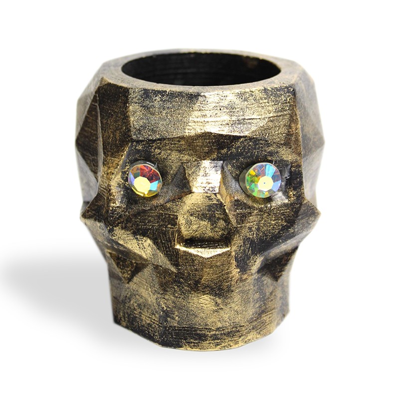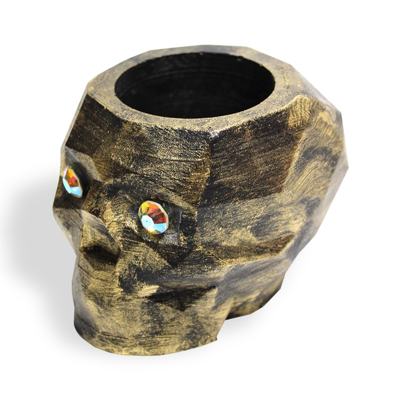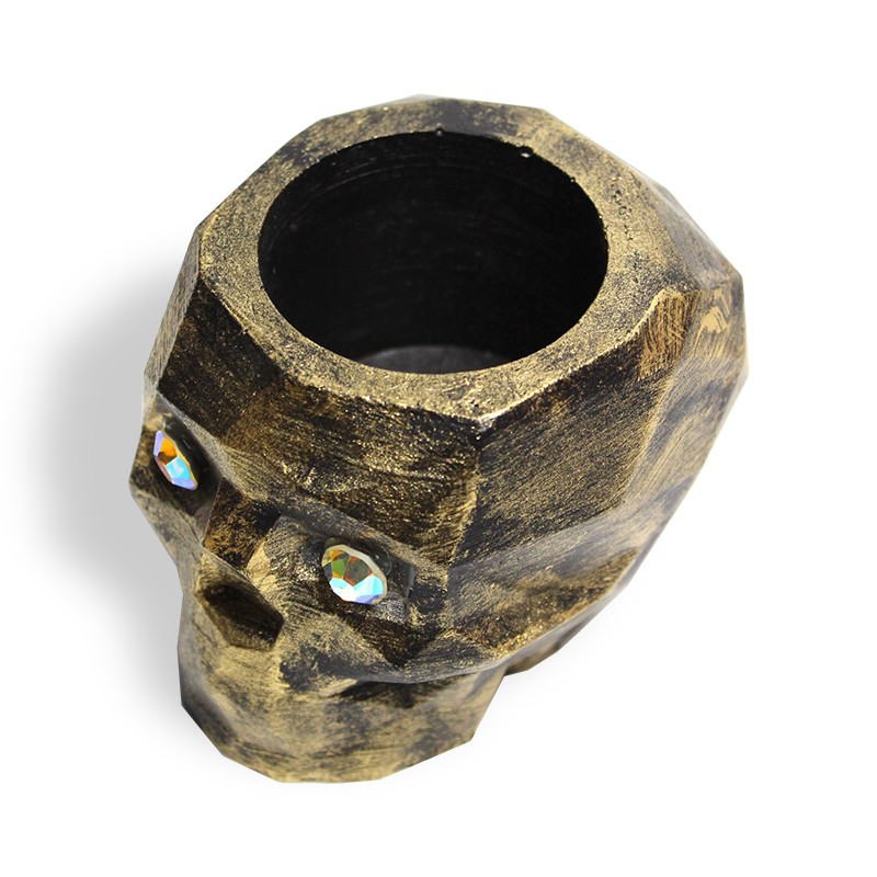 | Siyah Üstü Altın Varak Kurukafa Beton Saksı, Kristal Gözlü |