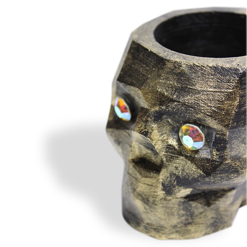 Siyah Üstü Altın Varak Kurukafa Beton Saksı, Kristal Gözlü