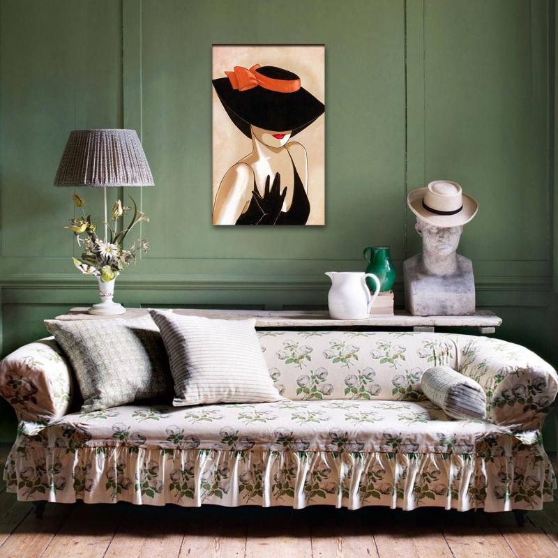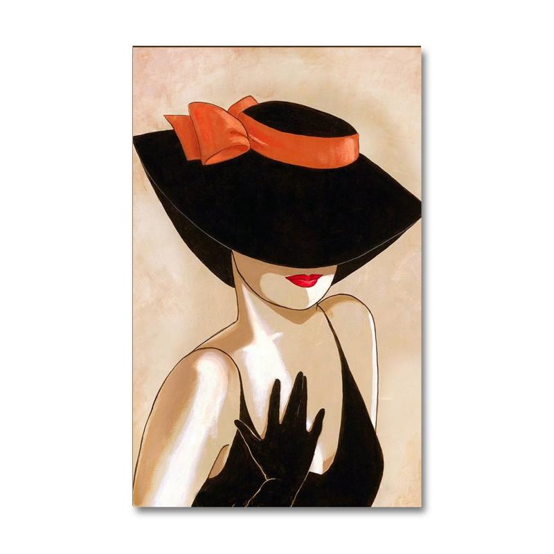 Vera Kırmızı Fiyonk Şapkalı Kadın Baskılı Retro Ahşap Tablo HK1307