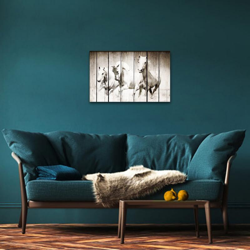 Vera Koşan Beyaz Atlar Baskılı Ahşap Tablo HK1326