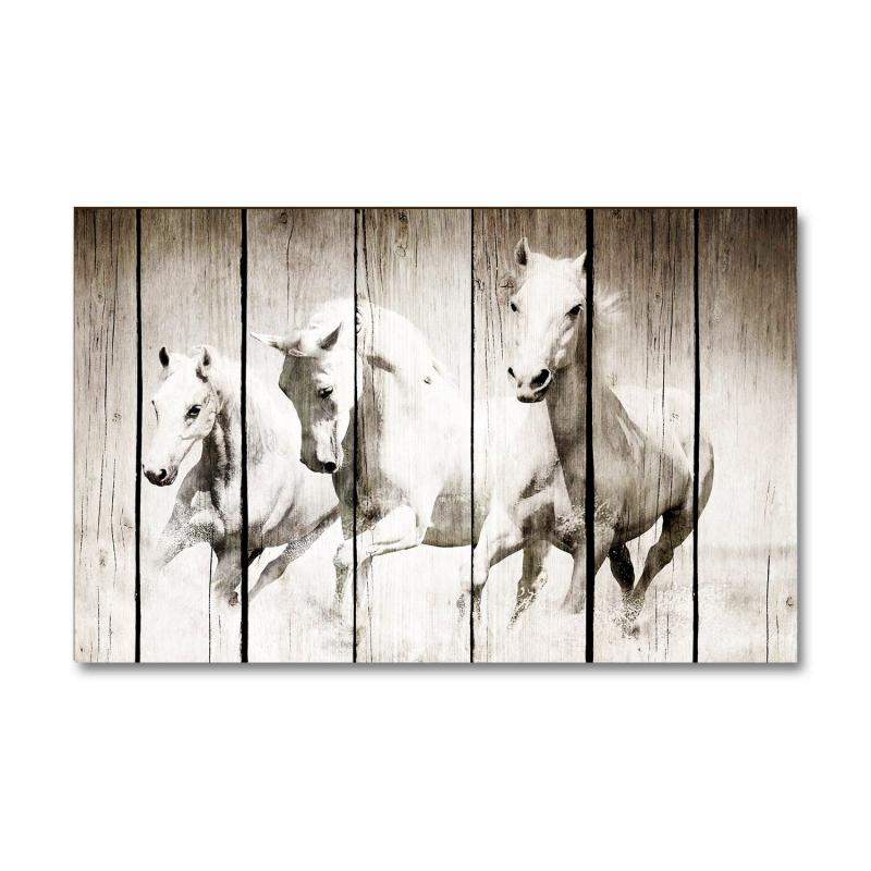 | Vera Koşan Beyaz Atlar Baskılı Ahşap Tablo |