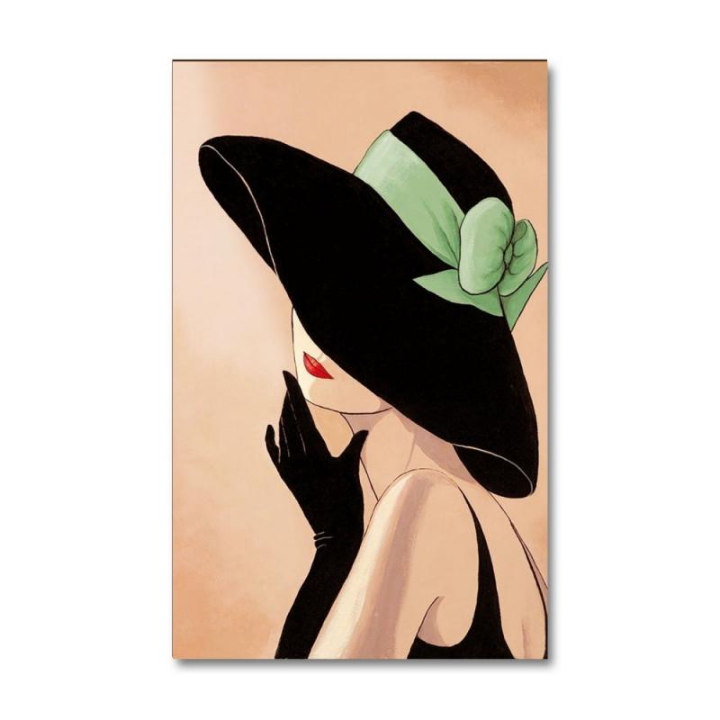 Vera Yeşil Fiyonk Şapkalı Kadın Baskılı Retro Ahşap Tablo HK1309
