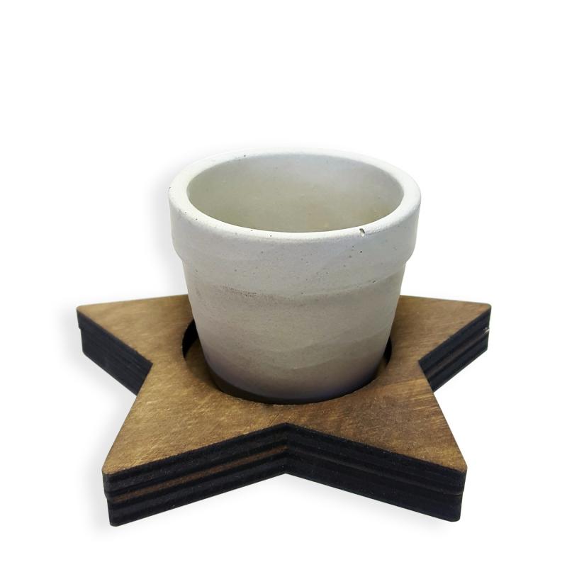 Yıldız Desenli Ahşap Ayaklı Konik Beton Saksı