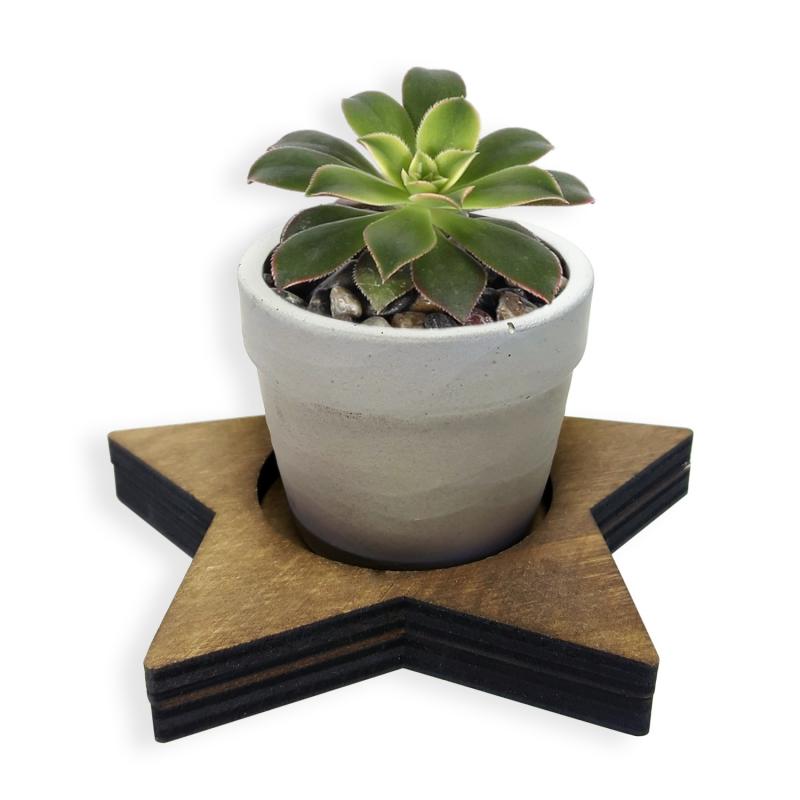 Yıldız Desenli Ahşap Ayaklı Konik Beton SaksıHK1650