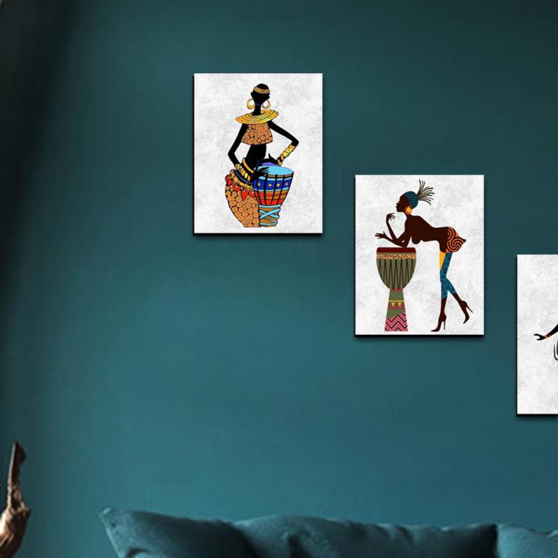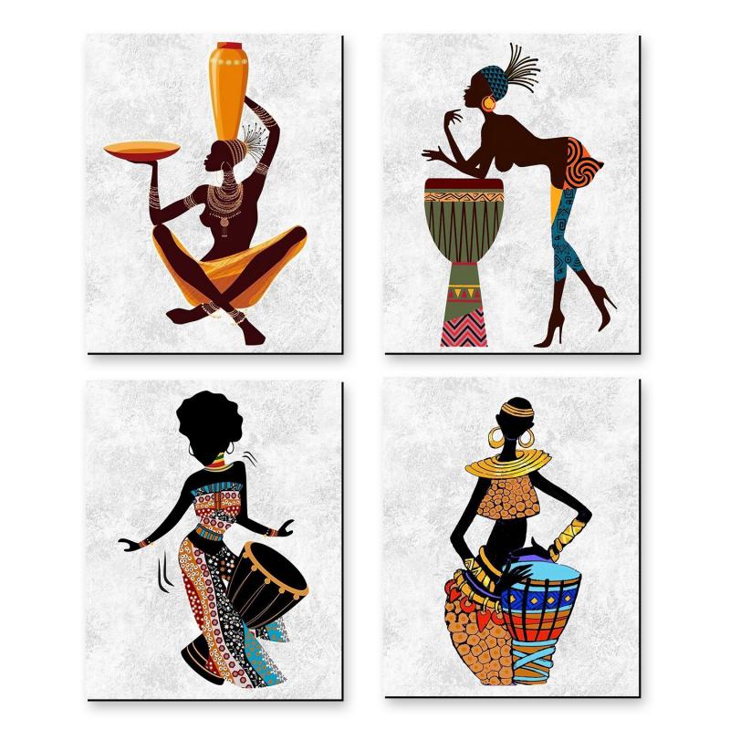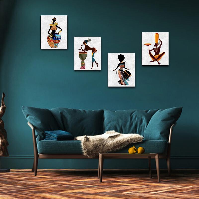 Zenci Kadın Baskılı 4'lü Ahşap Duvar Tablosu Küçük Boy